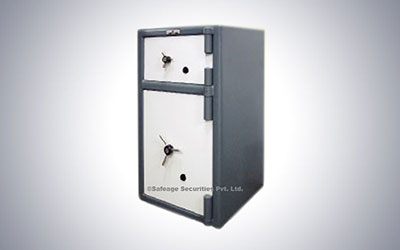 Keys are maintained by the cash manager. A variation to the above is the Rotor Type Depository Safe wherein a post like slit is provided and the cash when dropped falls into the Rotor which needs to be turned to drop the cash into the safe.